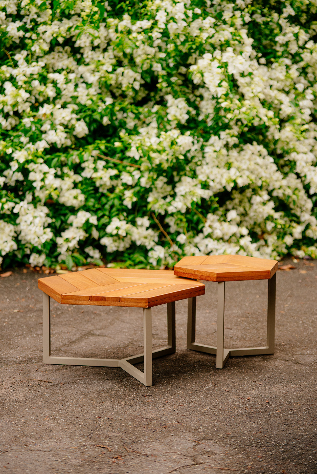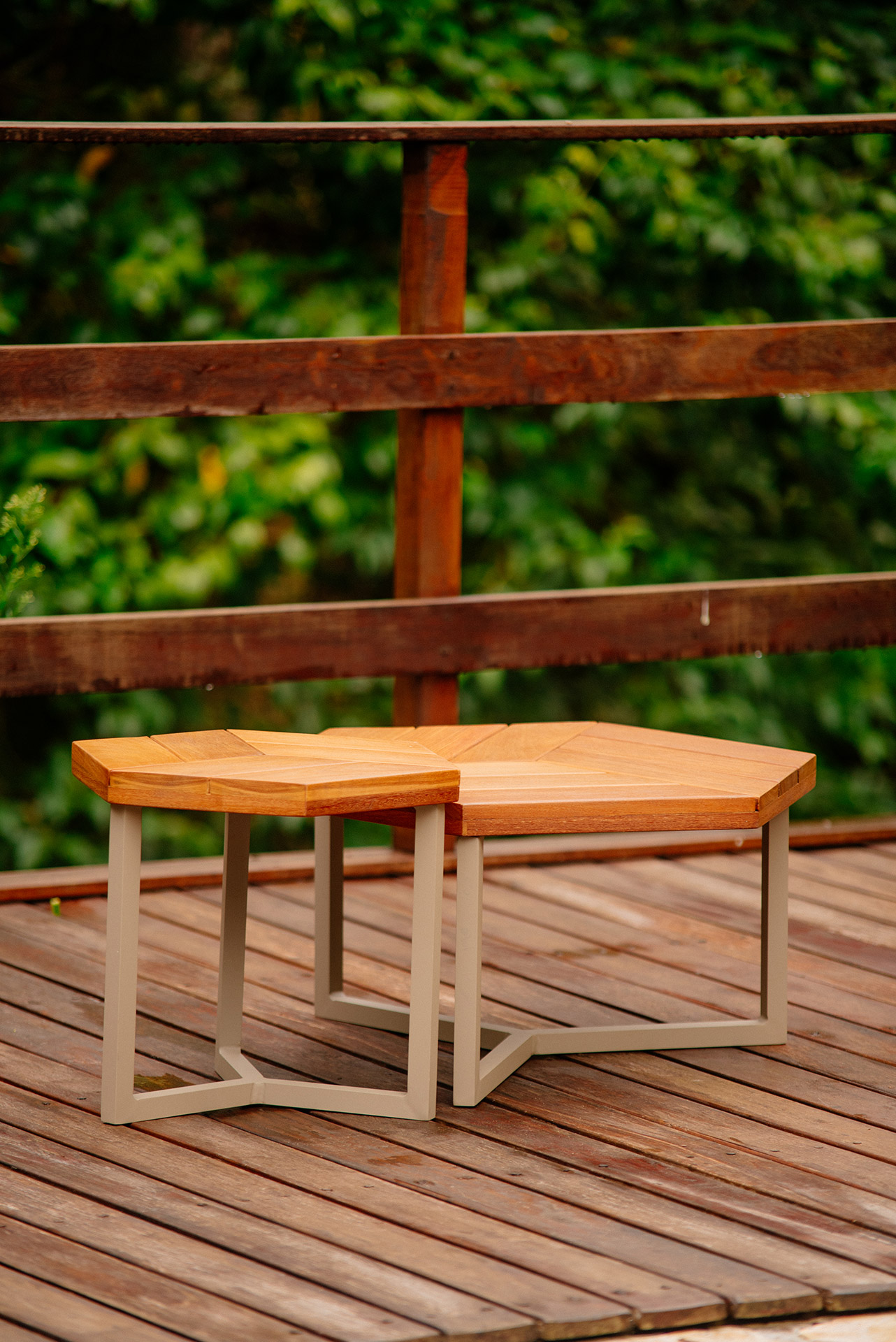 A mesa de centro Ceriolo é ideal para quem busca elegância e funcionalidade em móveis para áreas externas. Com estrutura em alumínio e tampo em madeira cumaru, combina durabilidade e sofisticação. Seu design hexagonal, disponível em duas alturas e diâmetros diferentes, oferece versatilidade, podendo ser utilizada em conjunto ou avulsa, adaptando-se perfeitamente a diversos espaços e necessidades. Projetada por Flávia Gueiros, a mesa de centro Ceriolo destaca-se pelo estilo moderno e praticidade, sendo ideal para varandas, jardins e áreas de lazer. Transforme seu espaço externo com a mesa de centro Ceriolo, que une beleza e funcionalidade em uma peça única e contemporânea.