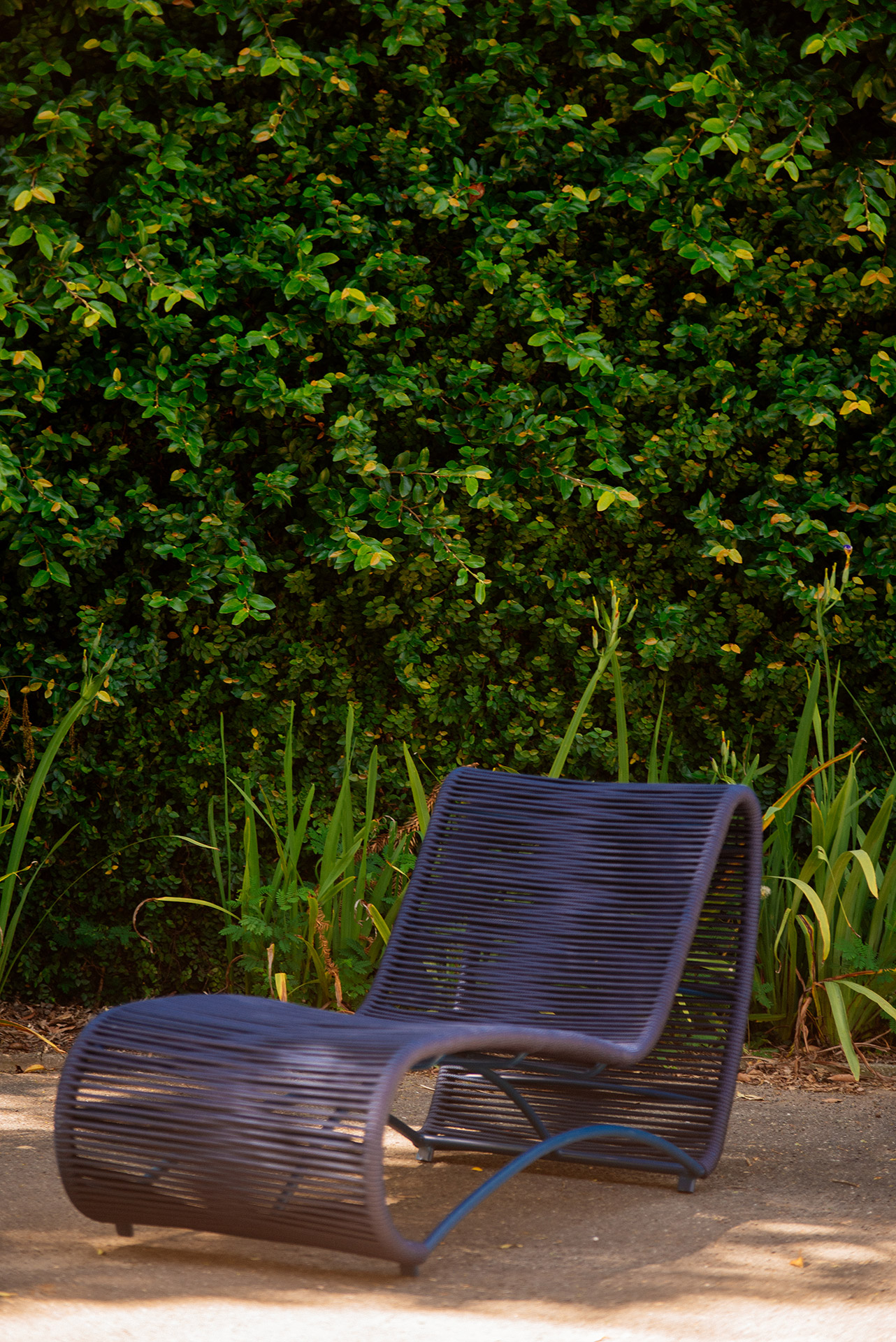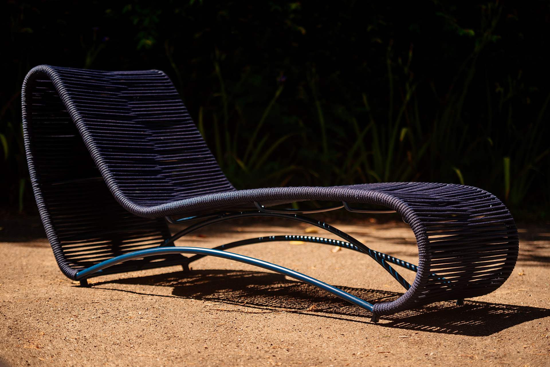 Estrutura em alumínio, pintura eletrostática e revestimento em corda náutica cilíndrica 10mm.