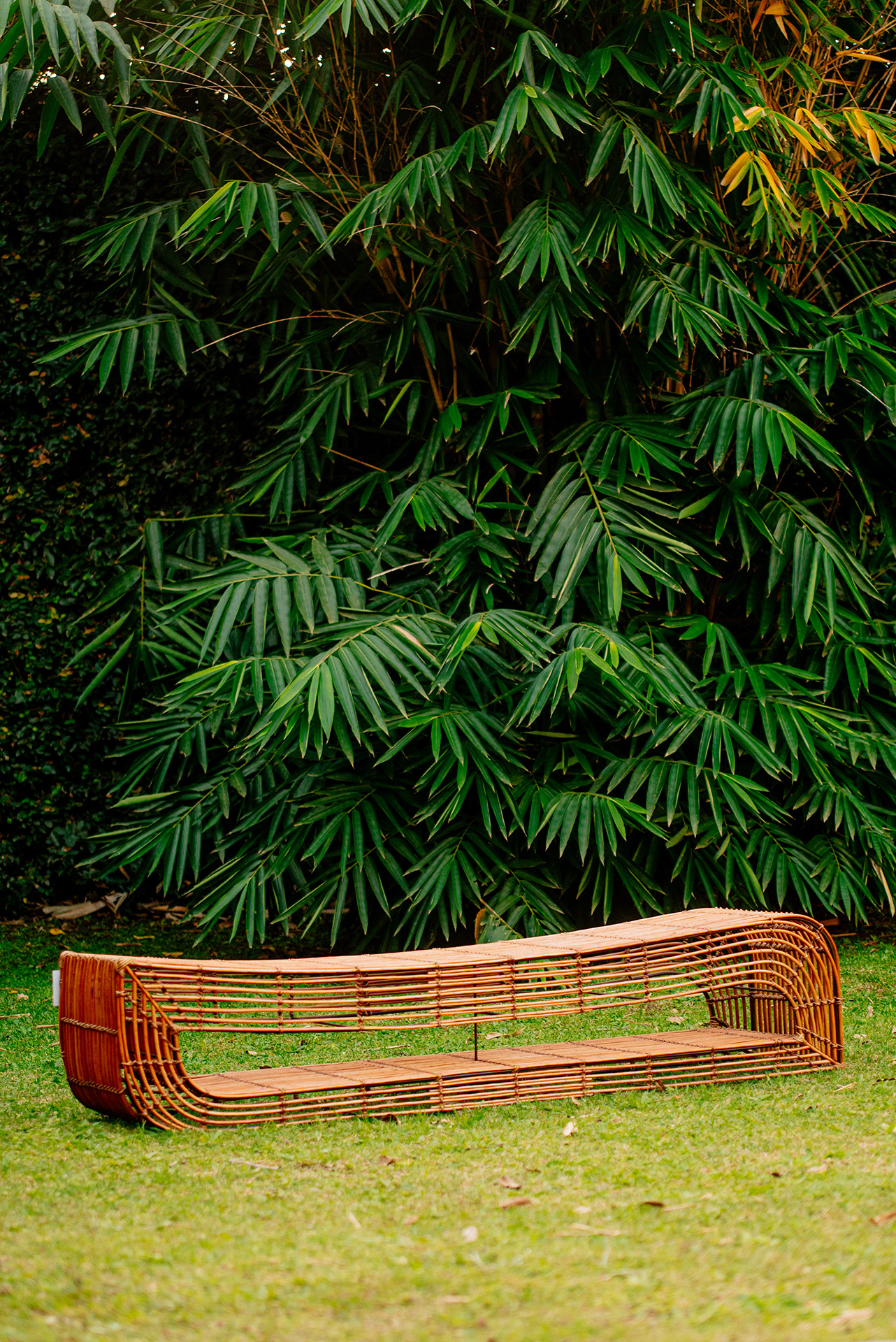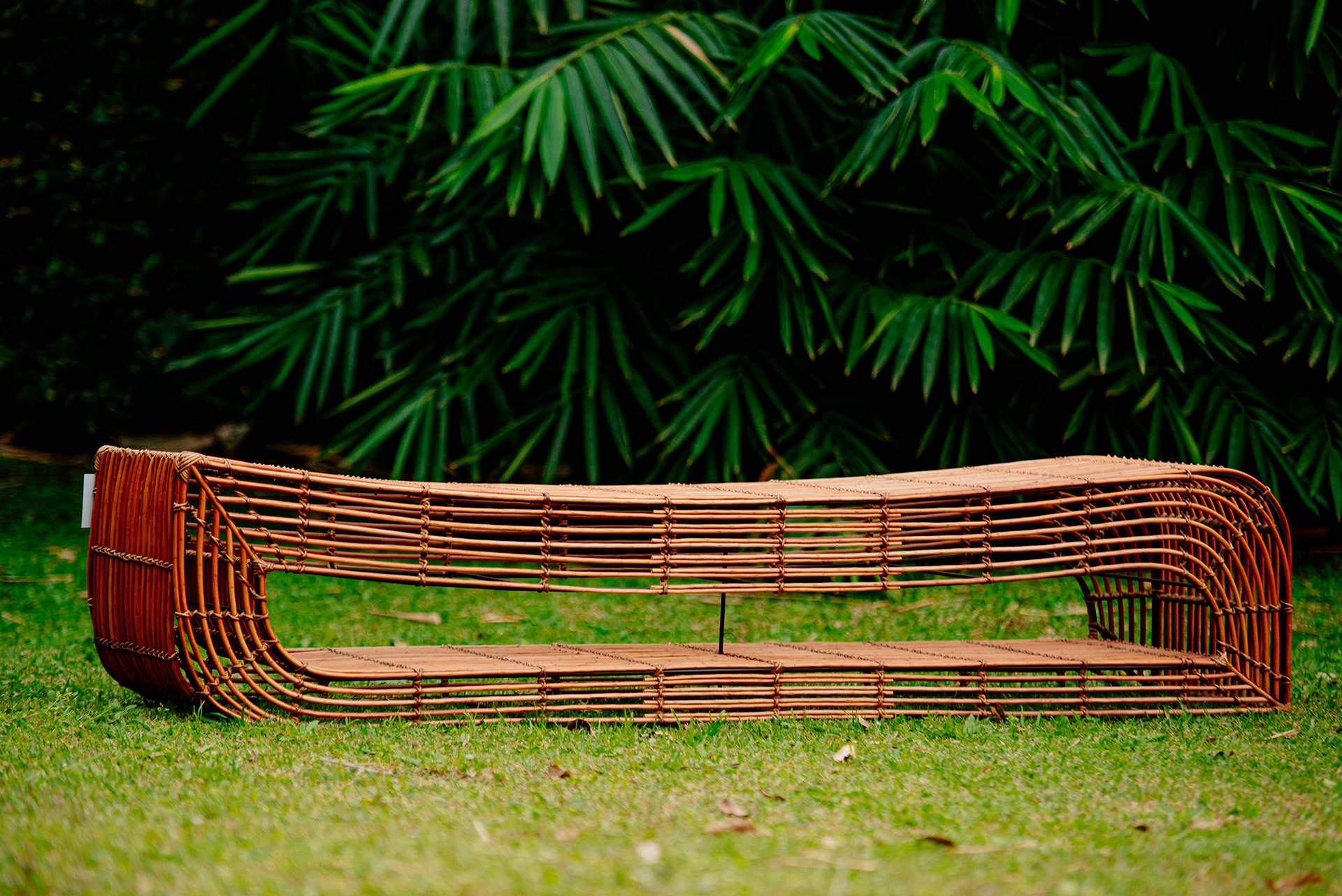Estrutura em ferro galvanizado e revestimento em vime e amarras em junco.