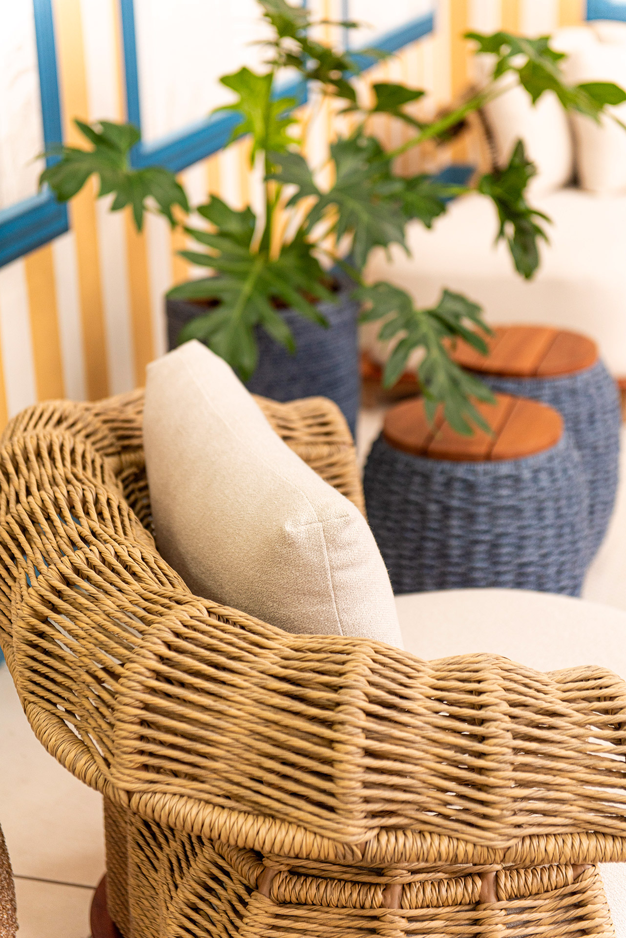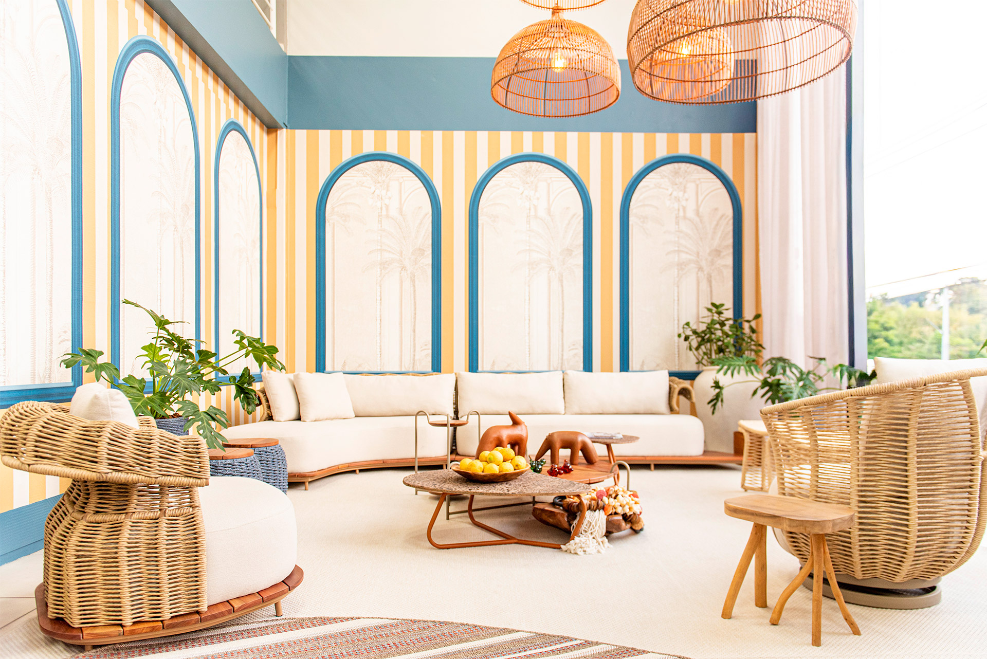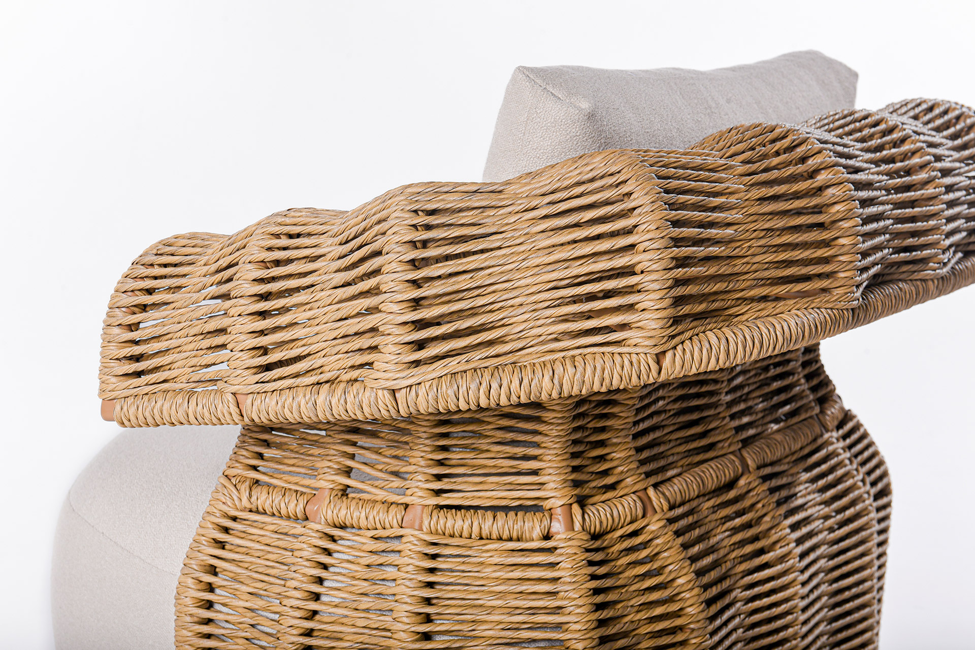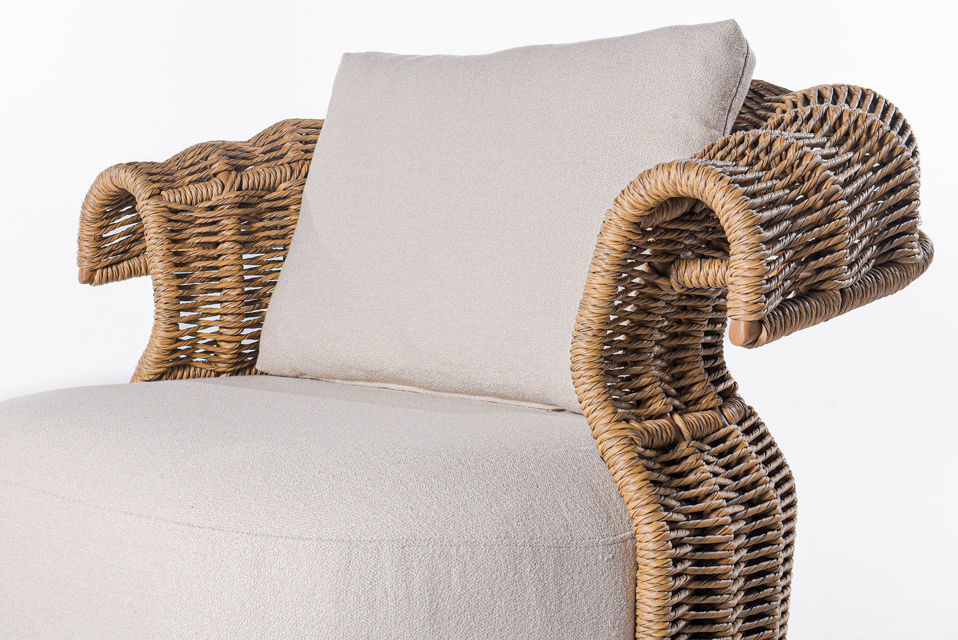 O sofá Limoncello traduz a harmonia entre leveza, fluidez e sofisticação. Inspirado no movimento orgânico das ondas, seu desenho apresenta linhas envolventes e braços com trama delicada em corda náutica, que criam uma estética marcante e atemporal.