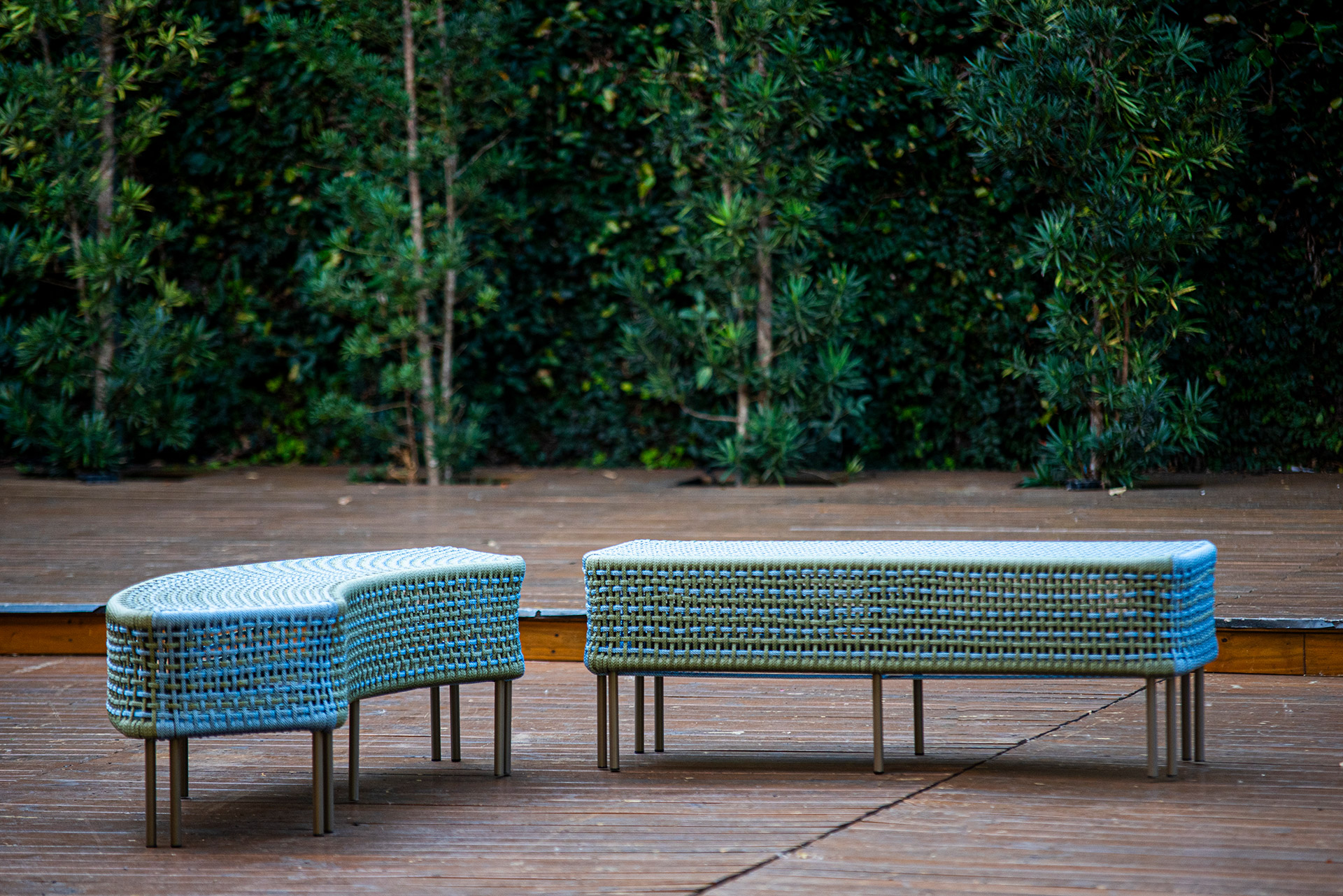 A coleção Global por André Vitarelli traz a essência da Índia para o Brasil. Após cinco anos de vivência na Índia, o designer brasileiro André Vitarelli apresenta uma coleção de móveis para área externa inspirada por sua imersão cultural, resultando em um diálogo intercultural único. Cada peça reflete uma conexão entre os hábitos indianos e a estética contemporânea brasileira. Os bancos Linha e Curva foram criados para áreas externas, destacando-se pela capacidade de acolher e se estender, simbolizando a hospitalidade e o calor das famílias indianas. Esses móveis são perfeitos para reunir pessoas ao ar livre, promovendo a socialização e prestando atenção aos detalhes culturais e funcionais.