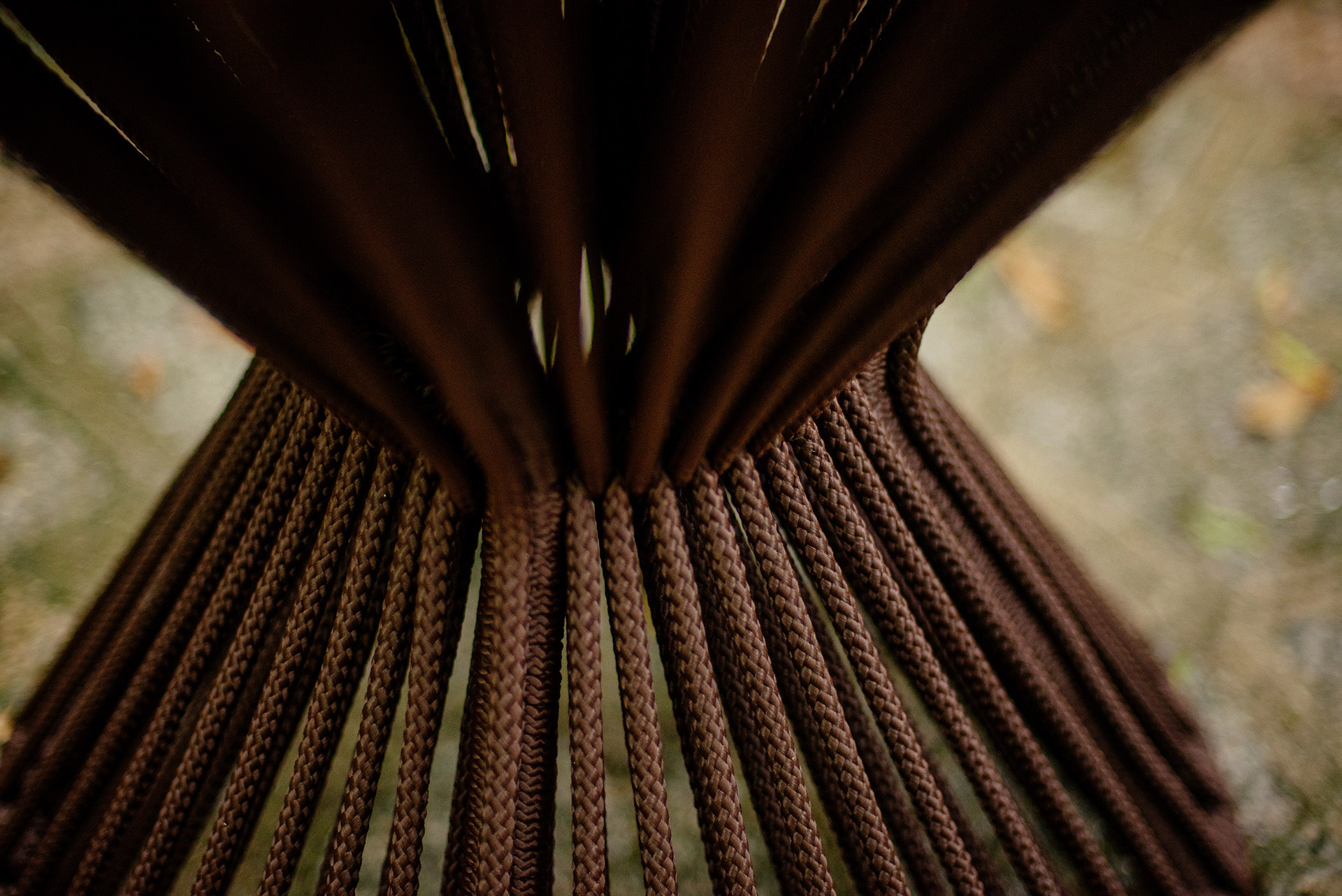 Estrutura em alumínio, pintura eletrostática e revestimento em corda náutica cilíndrica 10mm.
