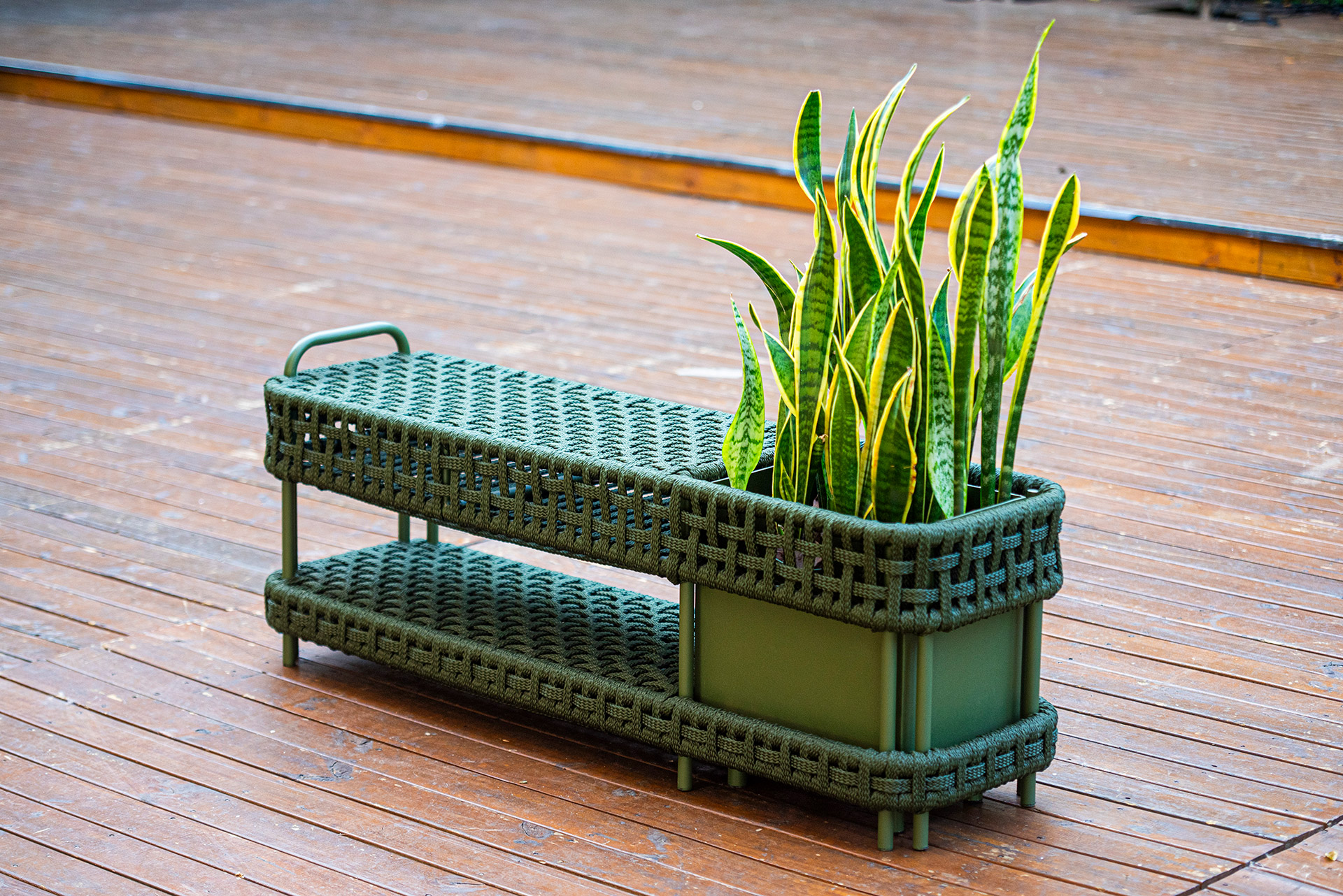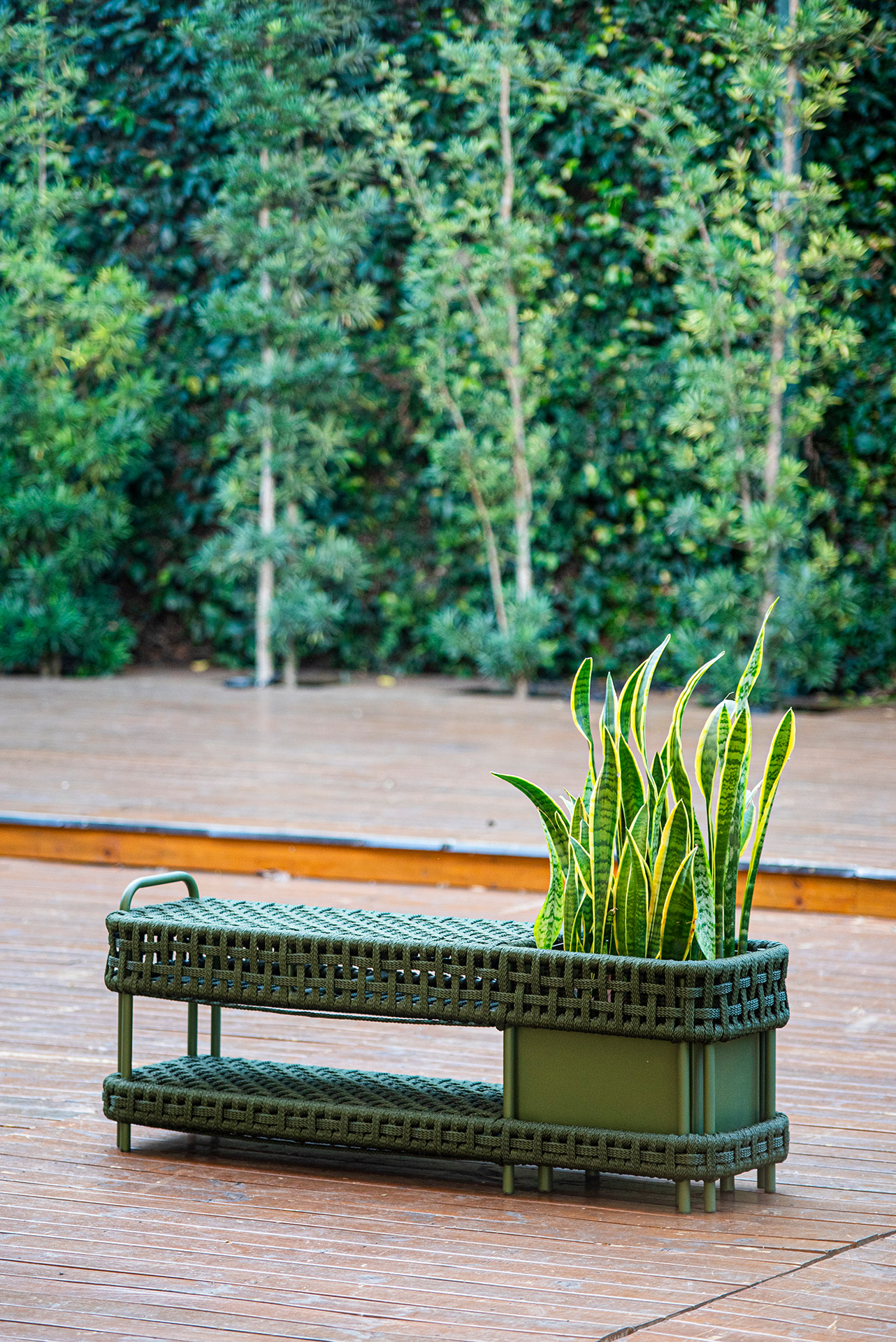 A coleção inclui o banco sapateira com vaso de planta, apelidado de Mancebo Banquim, que incorpora a prática indiana de tirar os sapatos antes de entrar em casa. Cada peça não só promove a socialização ao ar livre, mas também presta atenção aos detalhes culturais e funcionais, integrando tradições e modernidade de forma harmoniosa.