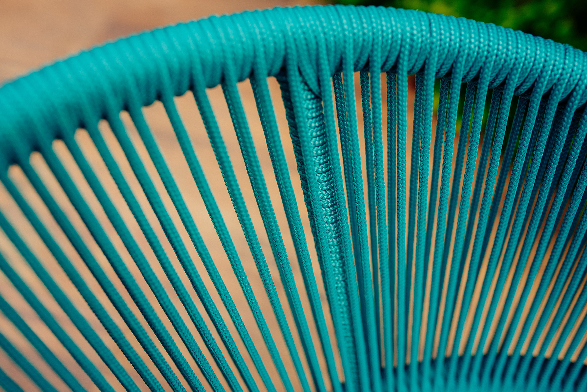 Estrutura em alumínio, pintura eletrostática e revestimento em corda náutica cilíndrica 6mm.