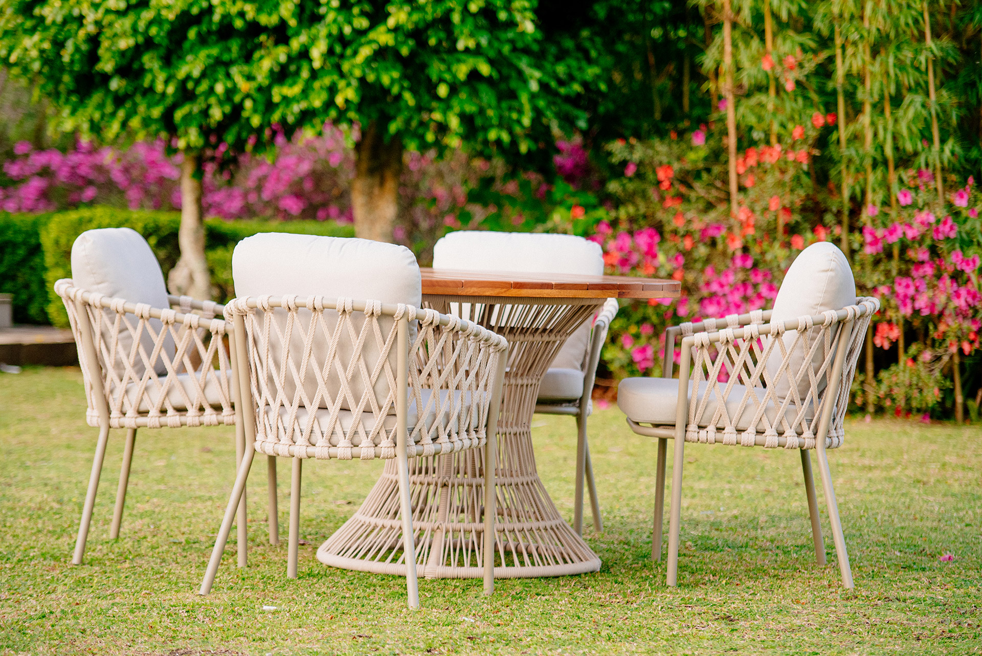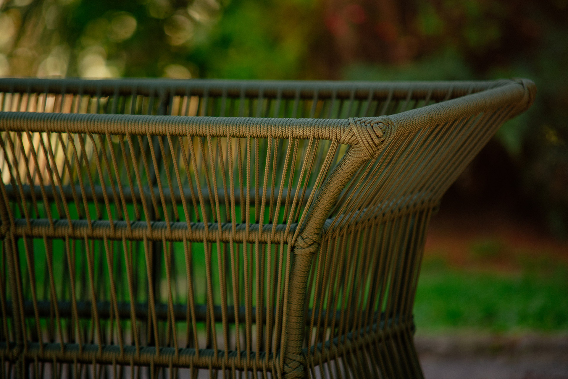 Estrutura em alumínio, pintura eletrostática e revestimento em corda náutica cilíndrica 6mm.