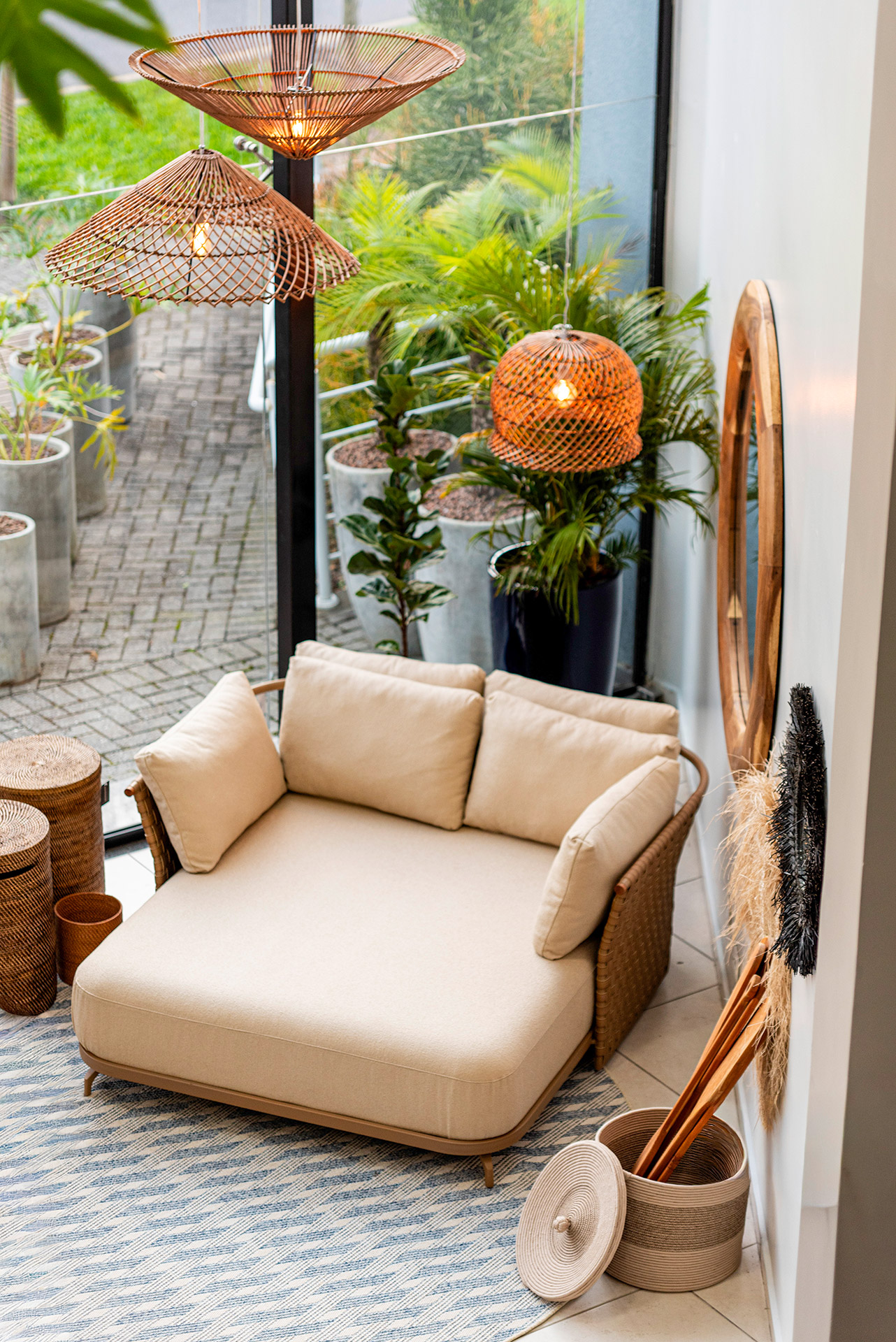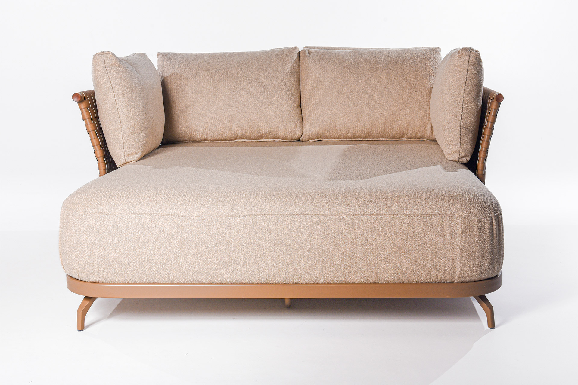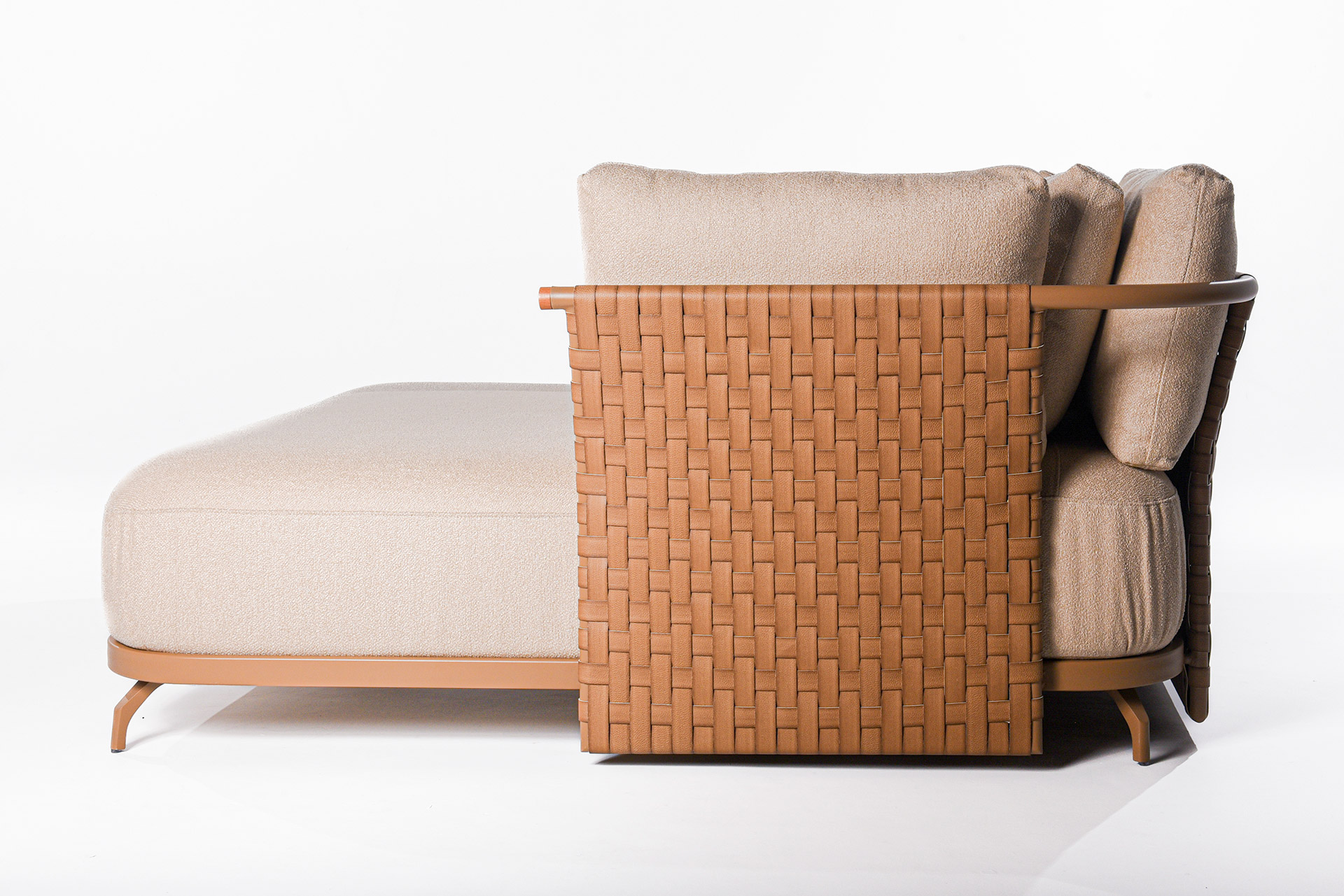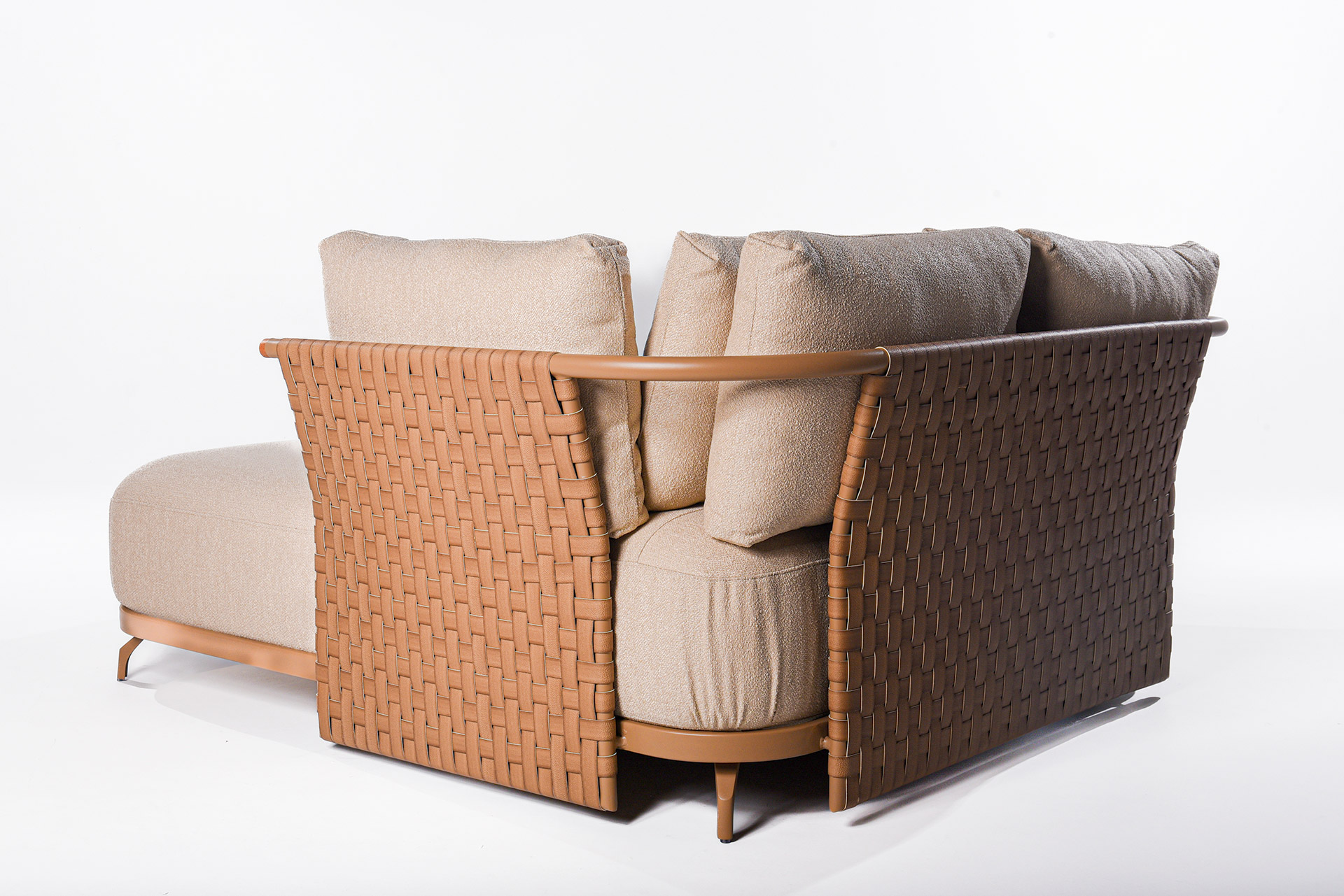 A chaise Di Capri foi criada para transmitir a leveza e a elegância do estilo mediterrâneo. Com linhas suaves e estrutura em trama cuidadosamente trabalhada, a peça traduz equilíbrio entre estética e funcionalidade. Seu design acolhedor convida ao relaxamento, enquanto o encosto e as almofadas generosas garantem conforto em qualquer momento do dia.