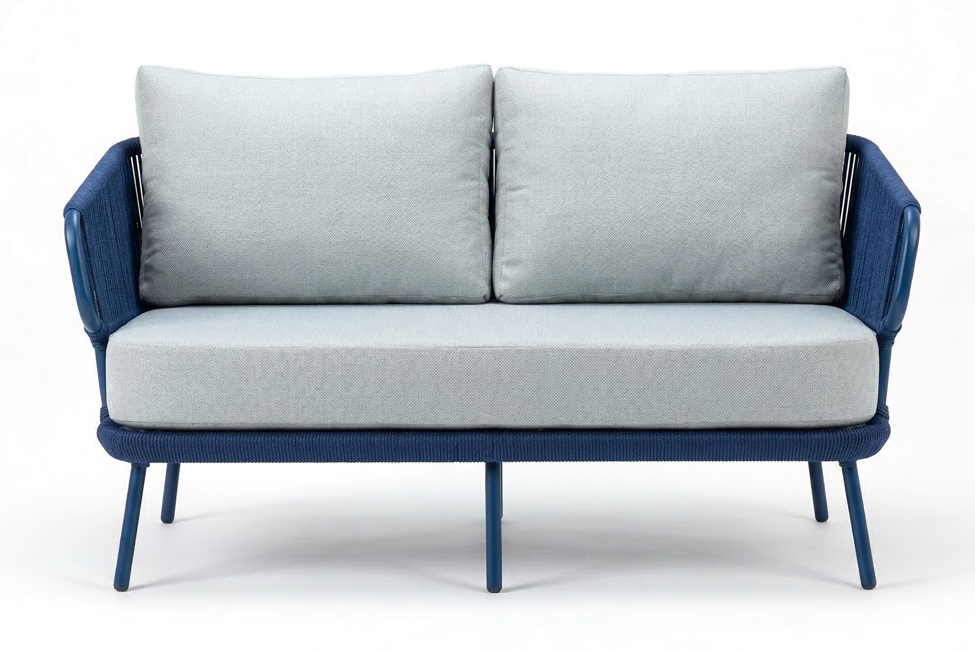 Estrutura em alumínio, pintura eletrostática e revestimento em corda náutica cilíndrica 6mm.
