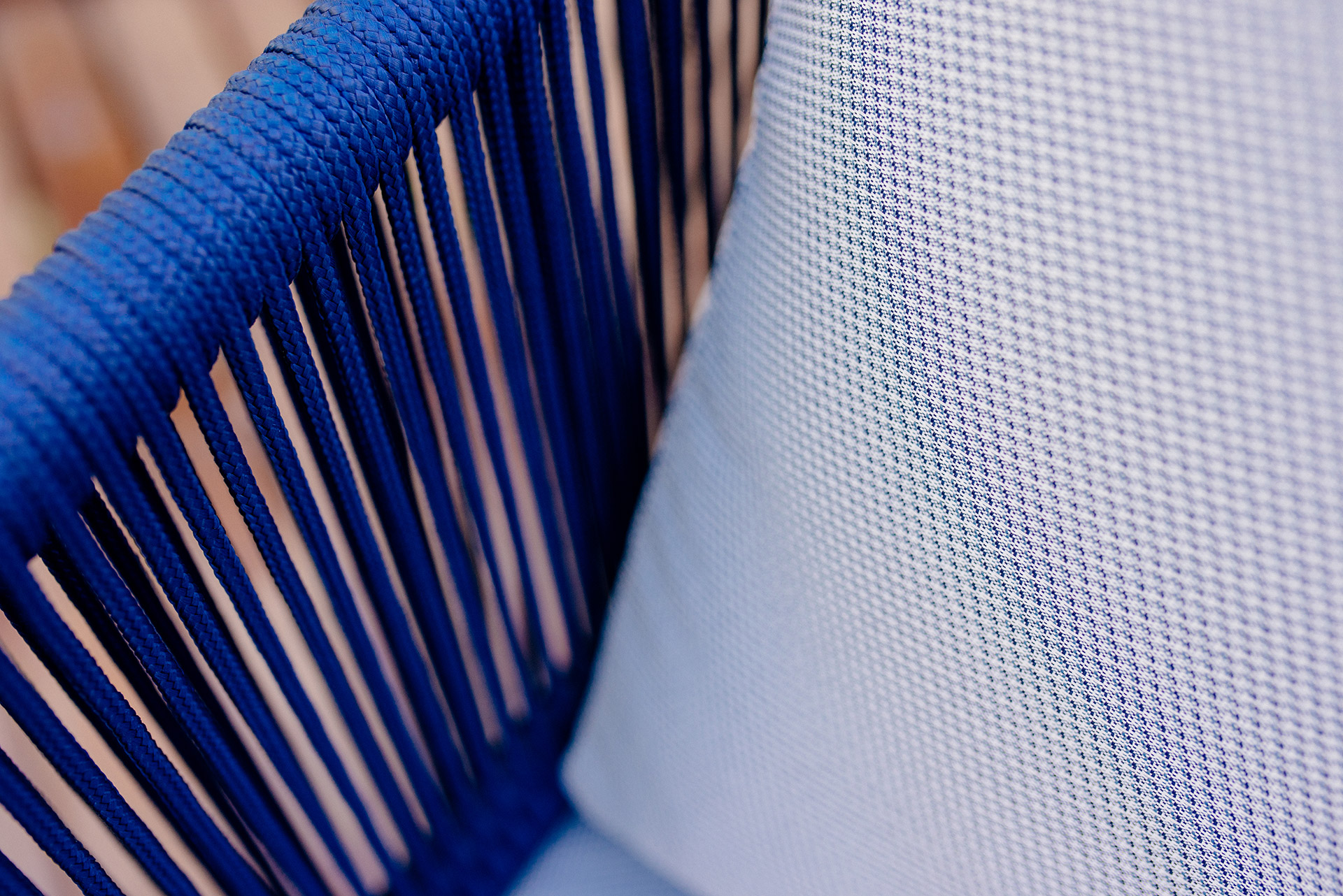 Estrutura em alumínio, pintura eletrostática e revestimento em corda náutica cilíndrica 6mm.
