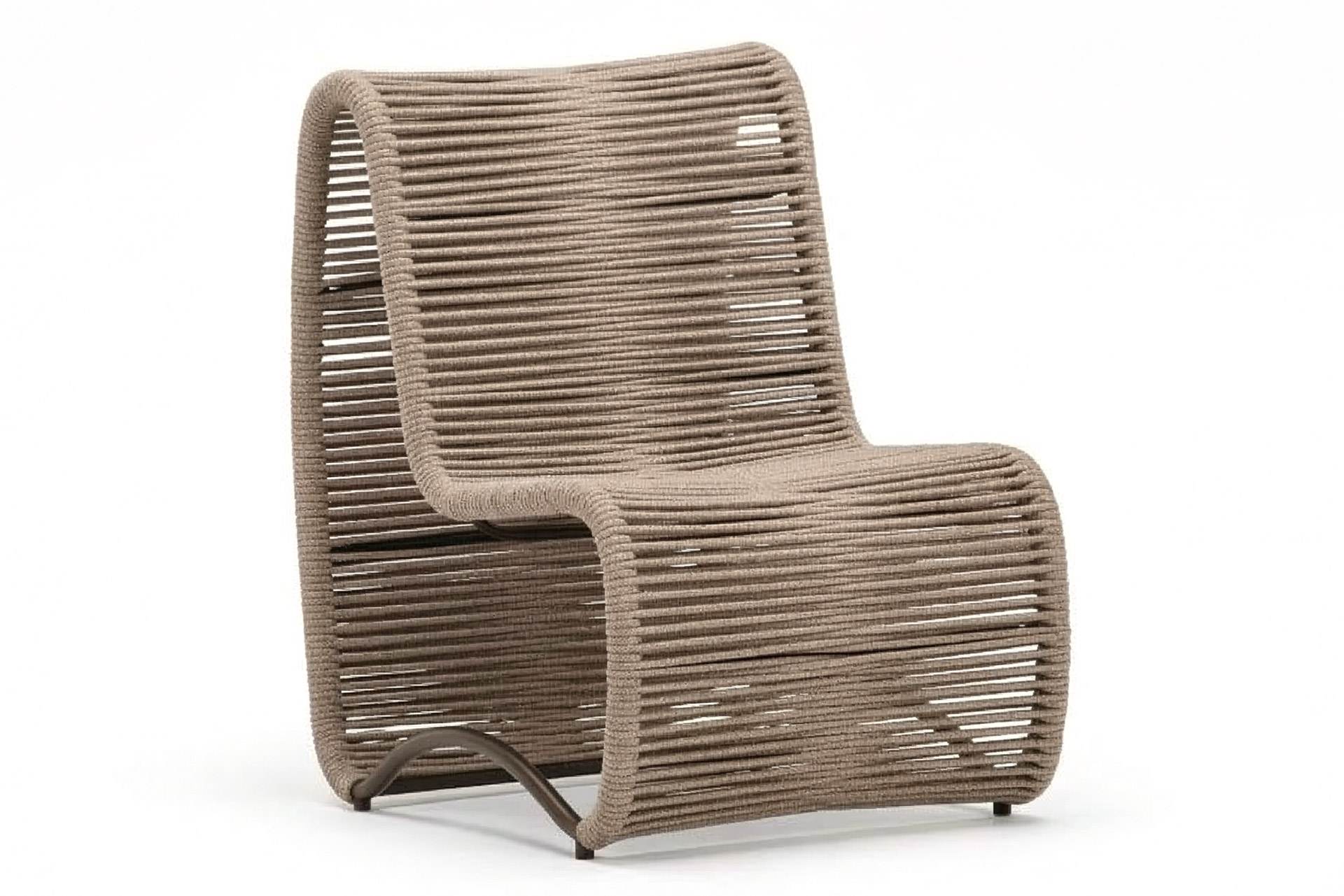 MATERIAL E ACABAMENTO: Estrutura em alumínio, pintura eletrostática e revestimento em corda náutica cilíndrica 6mm. MEDIDAS: Poltrona 0,75 x 0,66 x 0,88 m Pufe