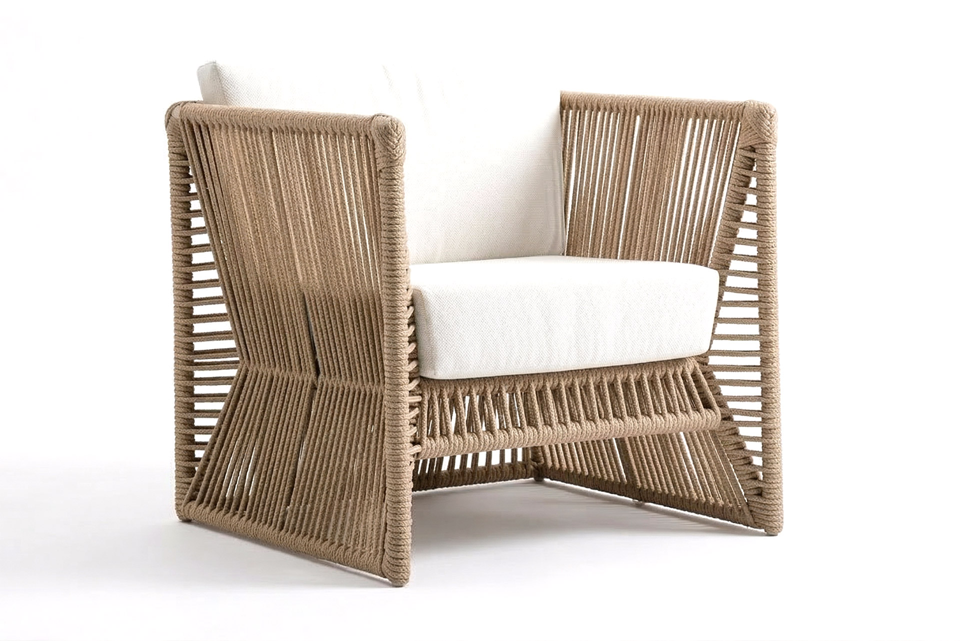MATERIAL E ACABAMENTO: Estrutura em alumínio, pintura eletrostática e revestimento em corda náutica cilíndrica 6mm. MEDIDAS: 0,83 x 0,76 x 0,80 m Poltrona Gabbro:
