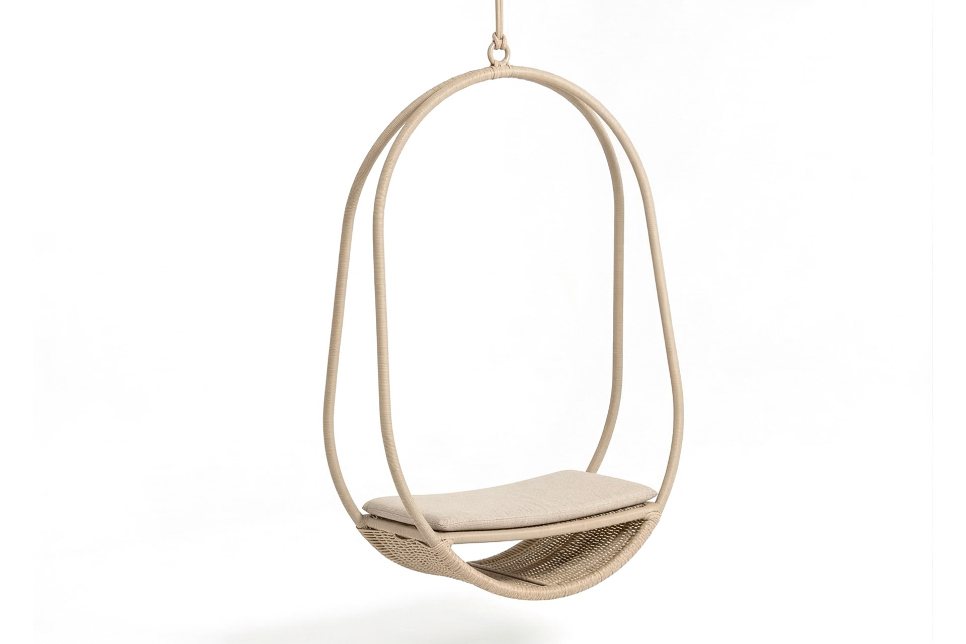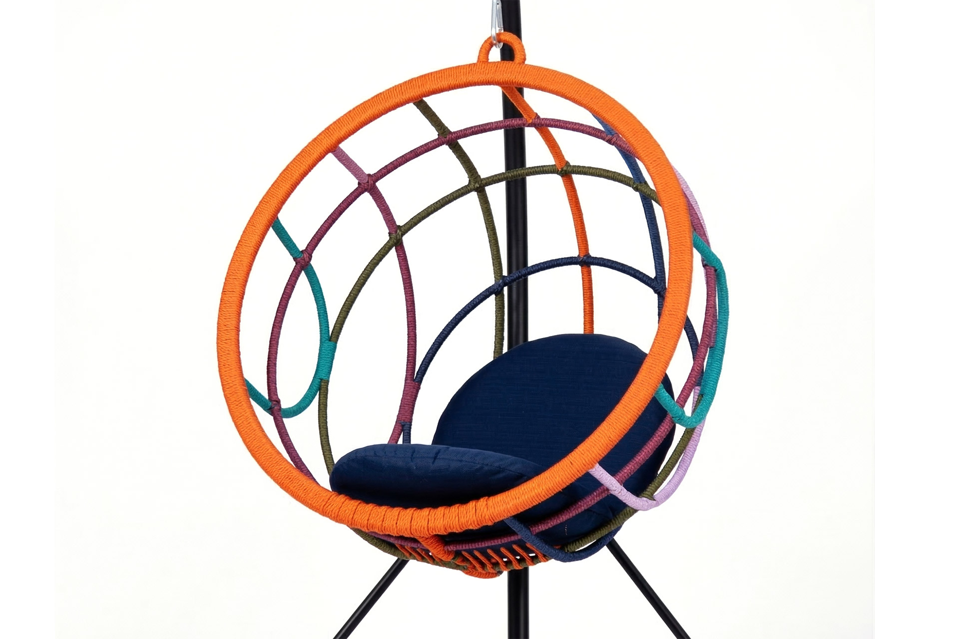 MATERIAL E ACABAMENTO: Estrutura em alumínio, pintura eletrostática e revestimento em corda náutica cilíndrica 10mm. MEDIDAS: 1,09 x 1,16 x 0,80 m bloco 3d: