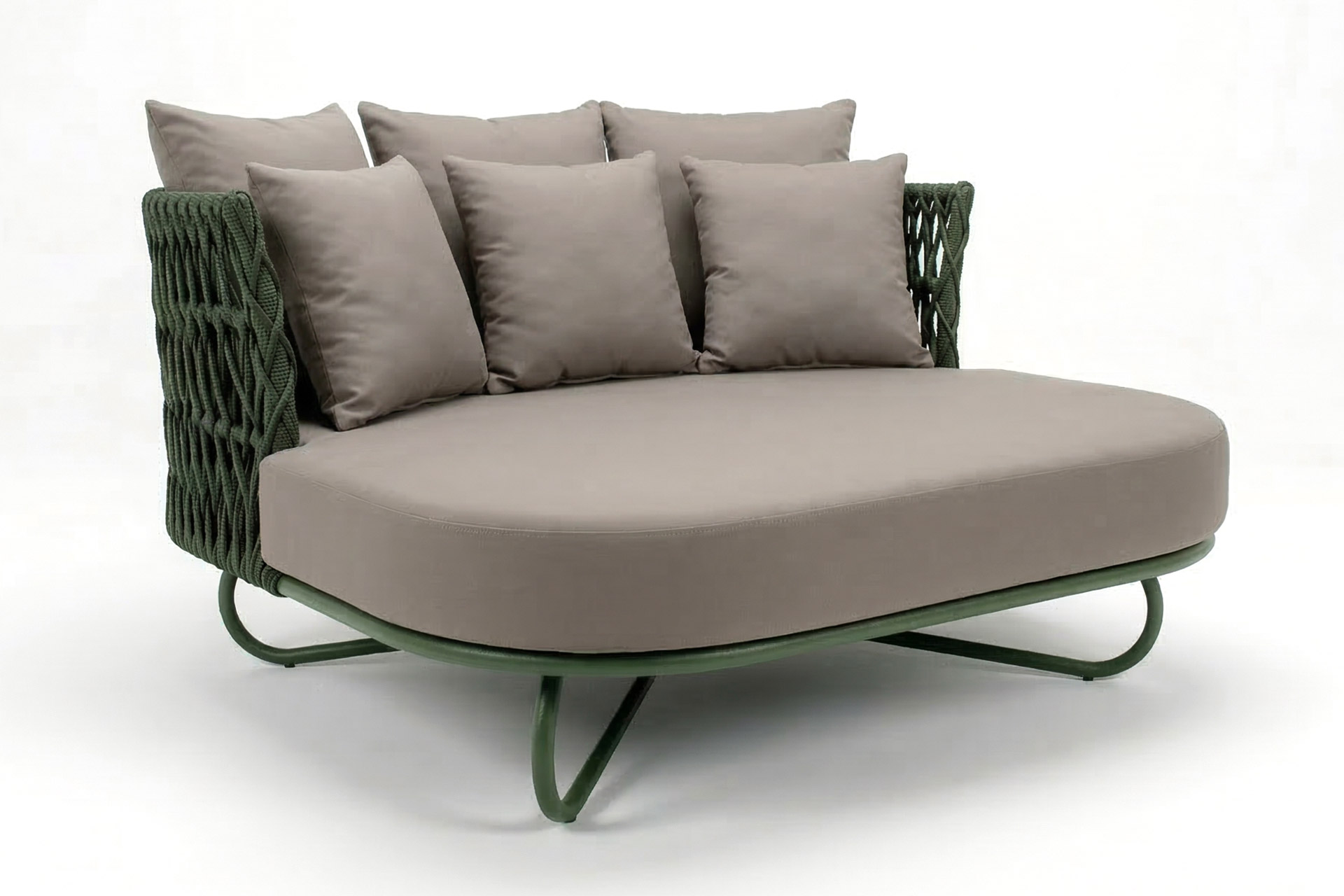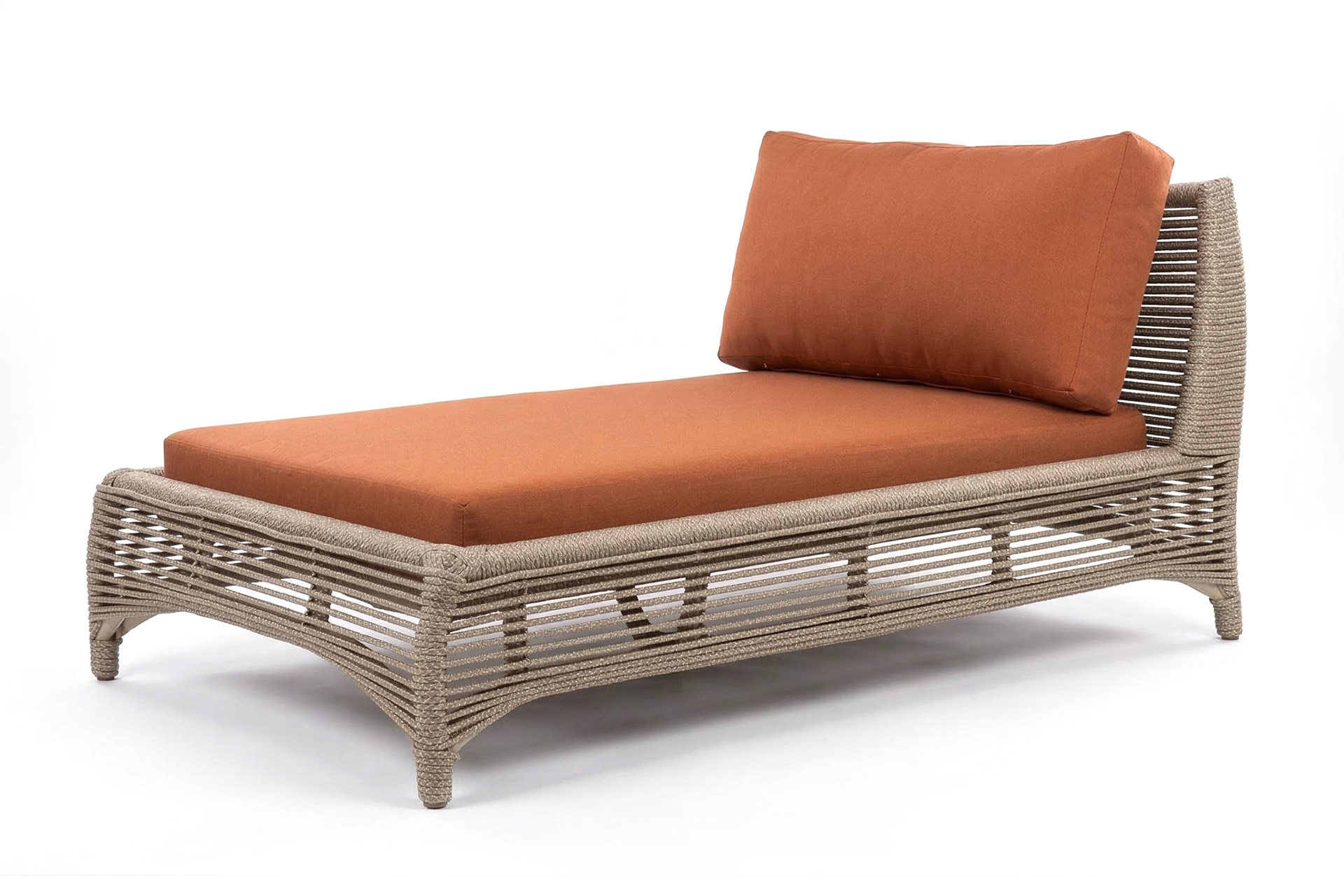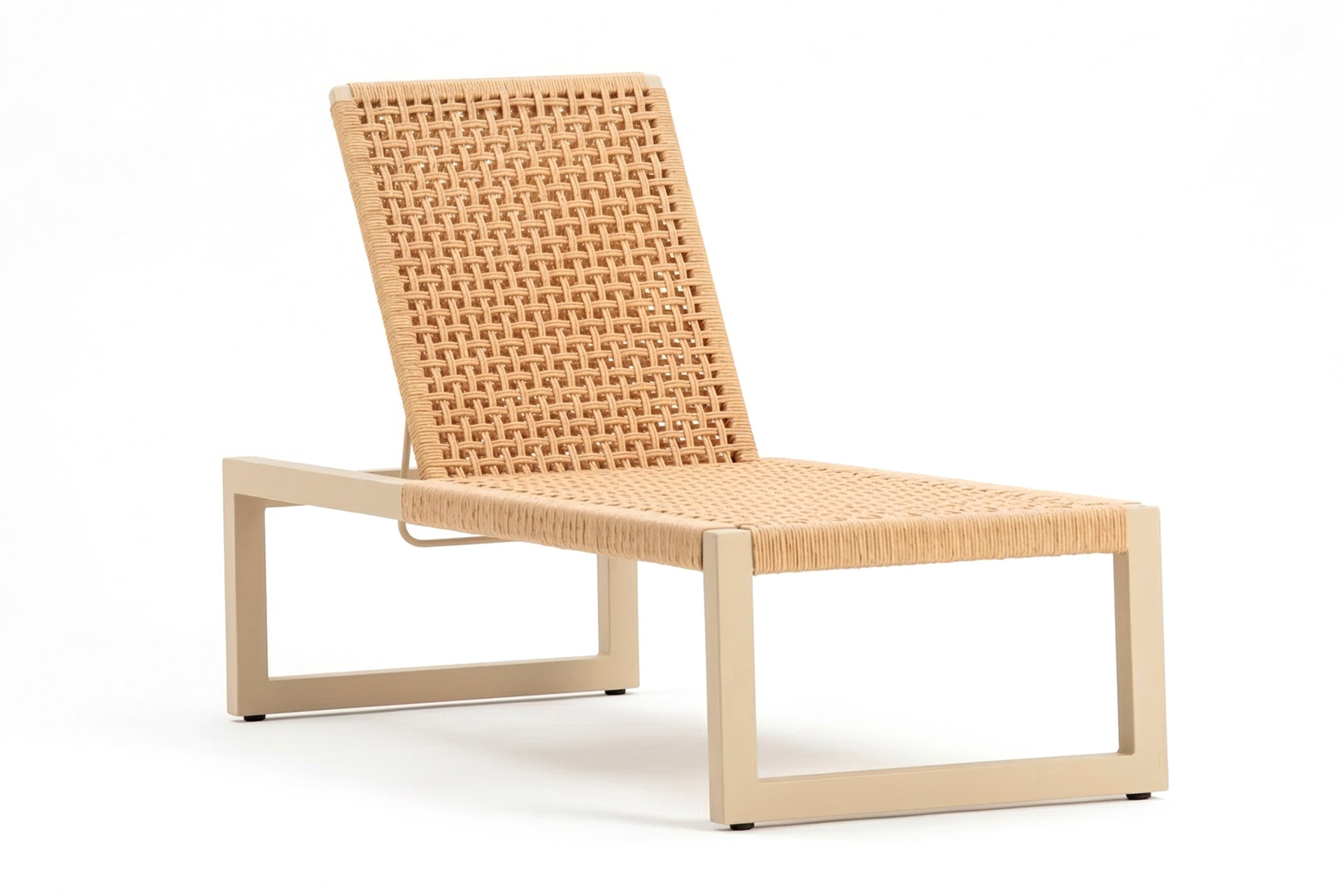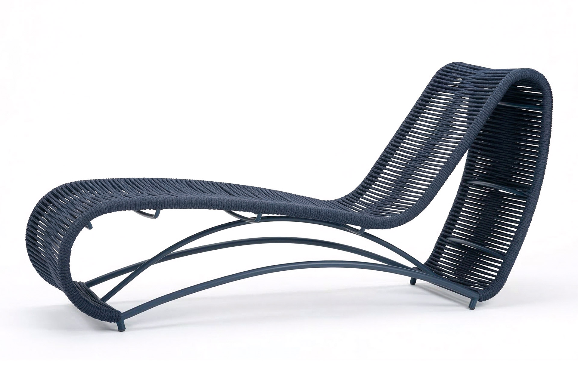 MATERIAL E ACABAMENTO: Estrutura em alumínio, pintura eletrostática e revestimento em corda náutica cilíndrica 6mm. MEDIDAS: 0,67 x 2,09 x 0,97 m bloco 3d: