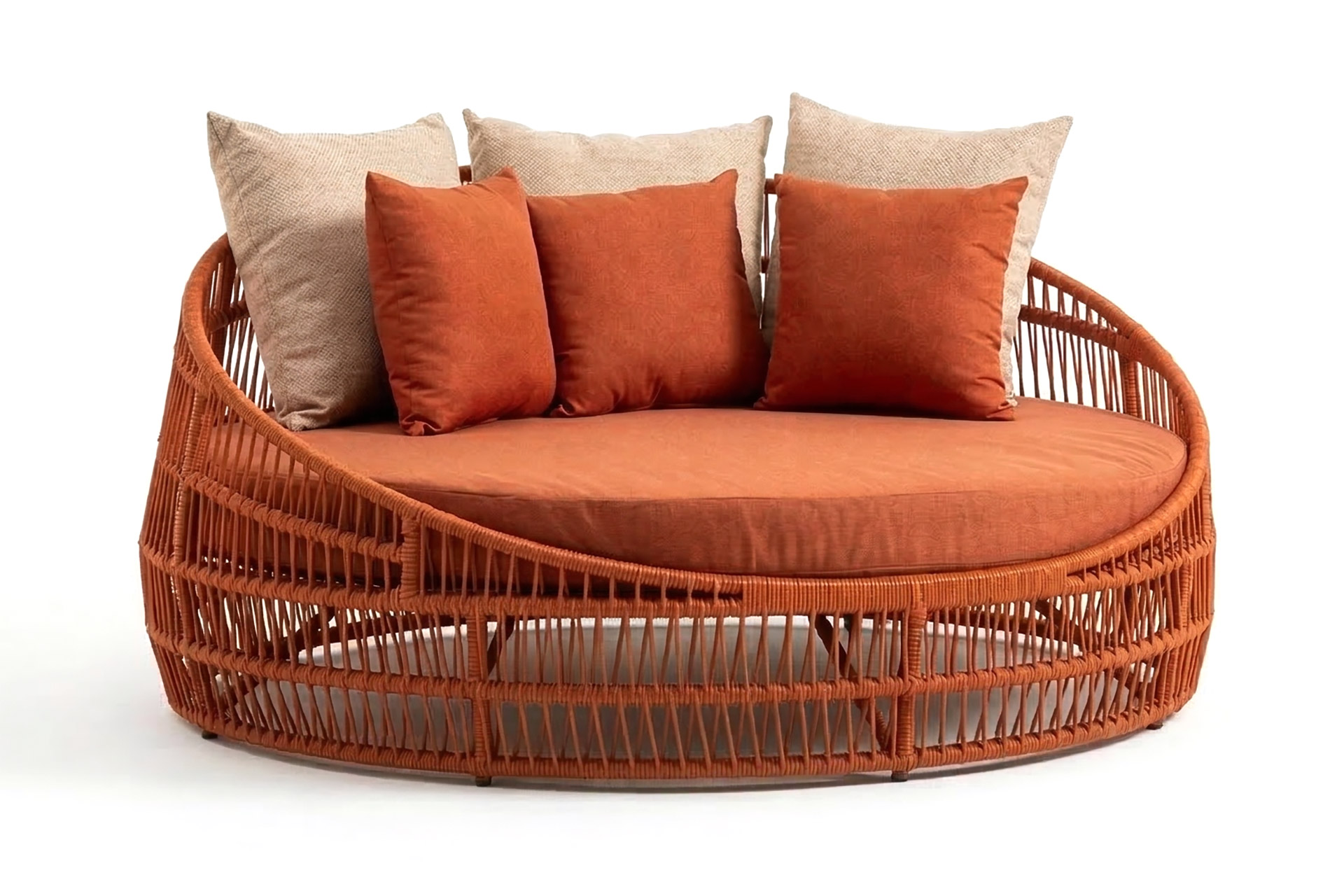 MATERIAL E ACABAMENTO: Estrutura em alumínio, pintura eletrostática e revestimento em corda náutica cilíndrica 10mm. MEDIDAS: 1,00 x 1,50 x 0,74 m DESIGN AUTORAL: