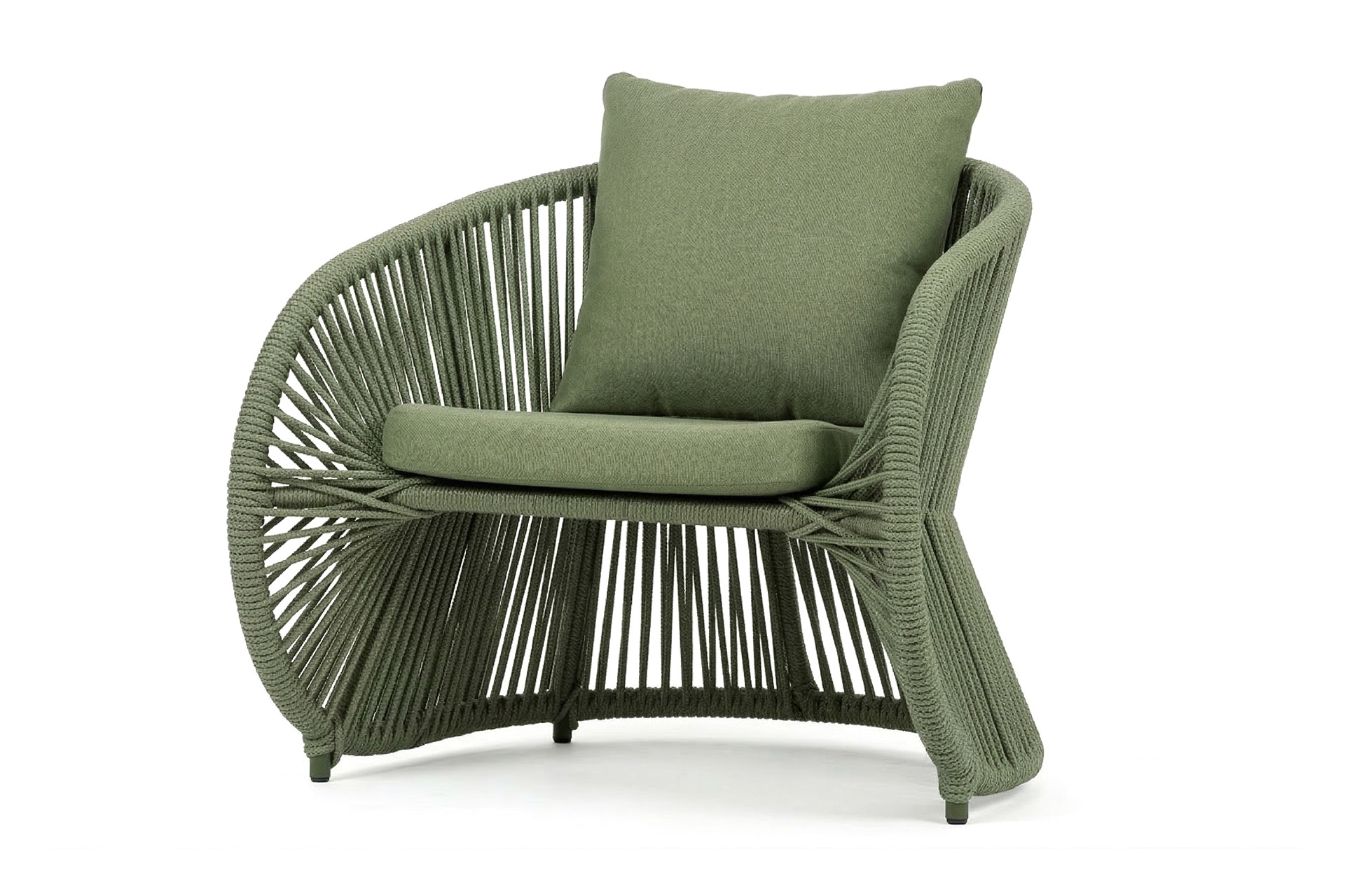 MATERIAL E ACABAMENTO: Estrutura em alumínio, pintura eletrostática e revestimento em corda náutica cilíndrica 6mm MEDIDAS: Poltrona 0,70 x 0,77 x 1,00 m Sofá