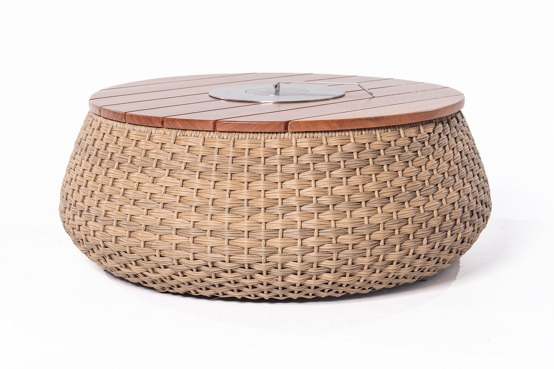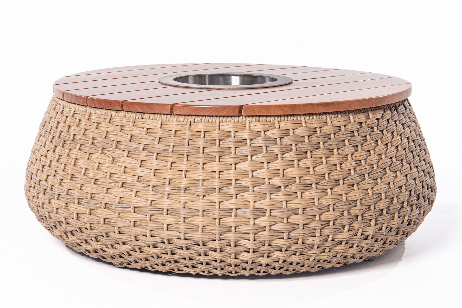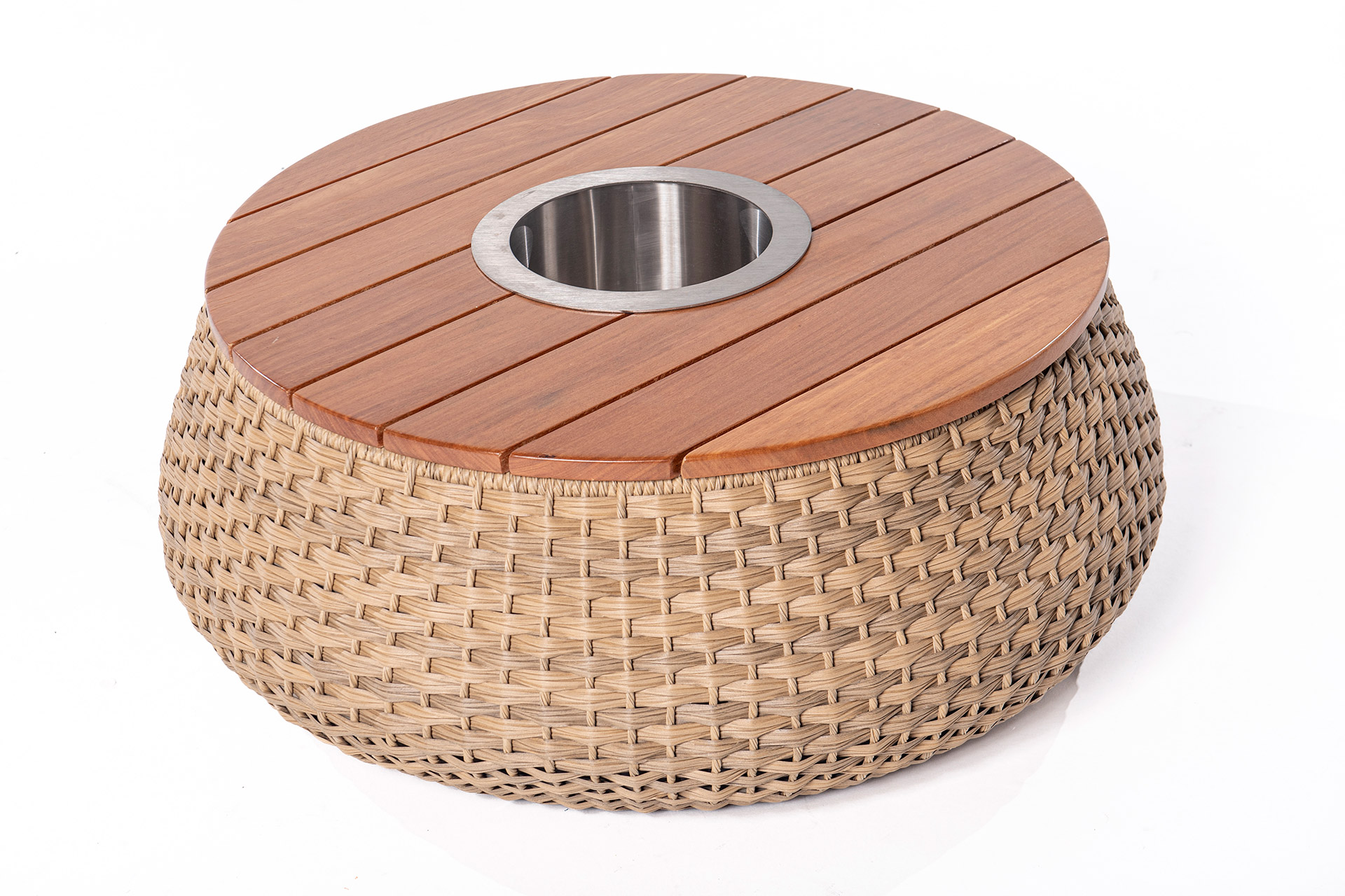 Com estrutura resistente em alumínio e revestimento em ráfia sintética, a mesa de centro Spedino combina durabilidade com um design contemporâneo. Versátil, oferece variedade de opções de tampo, como alumínio ripado, liso ou madeira. Além disso, pode ser acompanhada de uma champanheira e lareira, tornando-a uma peça multifuncional e elegante para seu espaço ao ar livre.