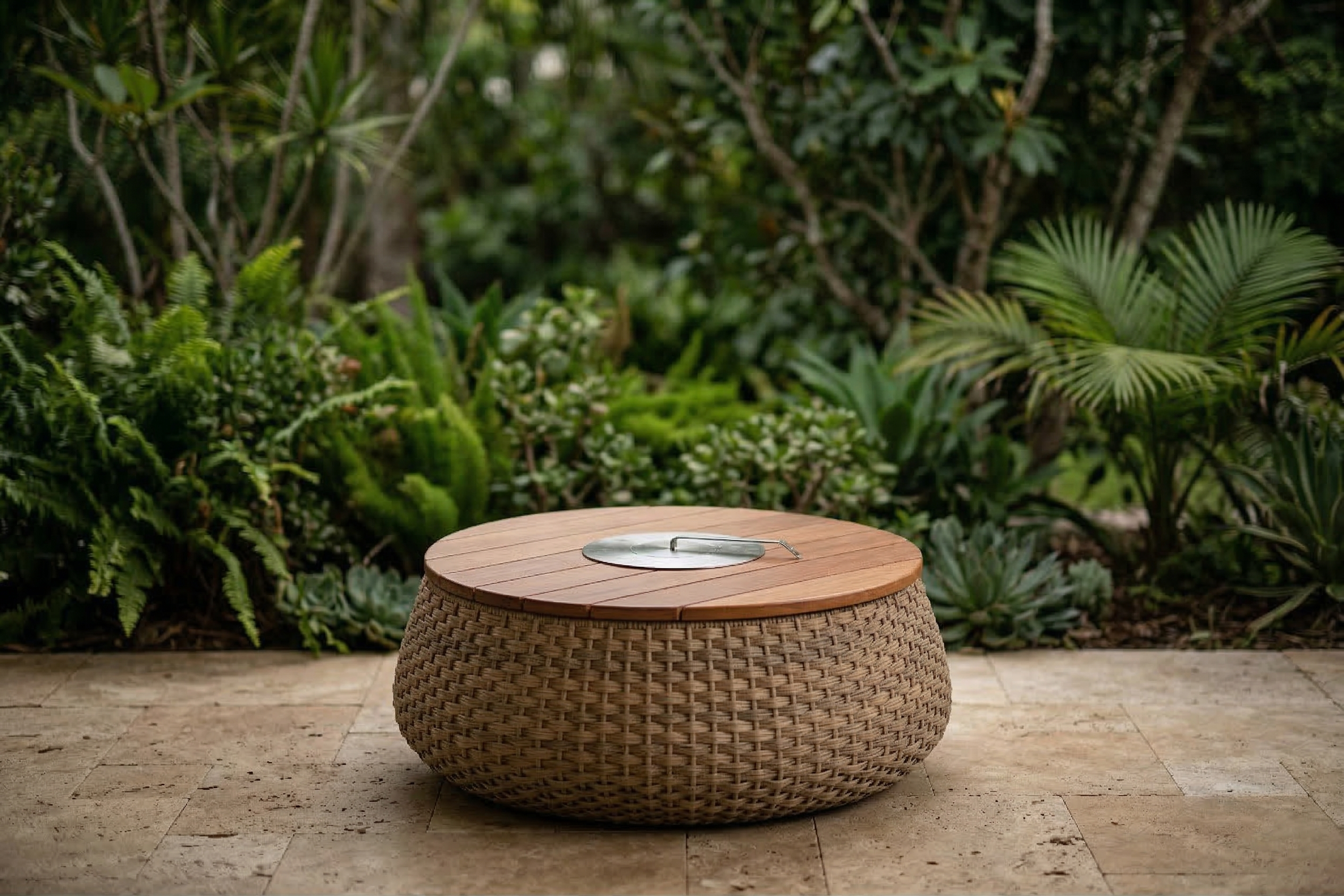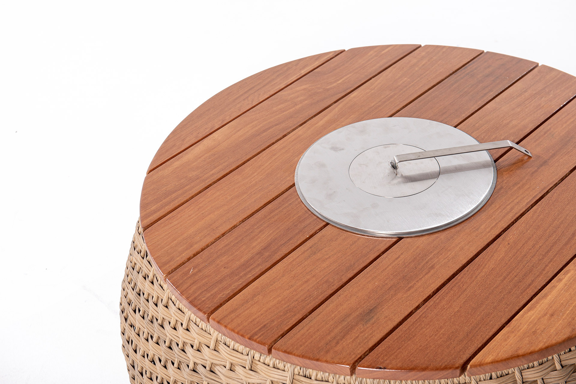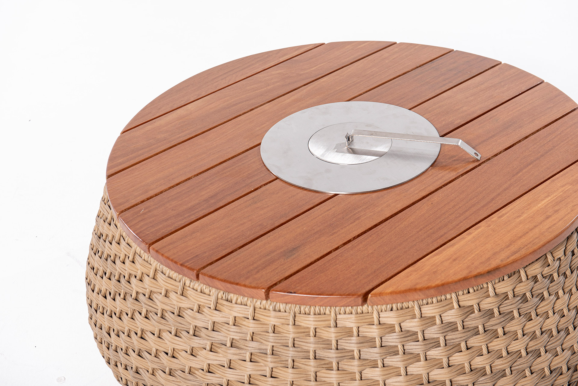 Com estrutura resistente em alumínio e revestimento em ráfia sintética, a mesa de centro Spedino combina durabilidade com um design contemporâneo. Versátil, oferece variedade de opções de tampo, como alumínio ripado, liso ou madeira. Além disso, pode ser acompanhada de uma champanheira e lareira, tornando-a uma peça multifuncional e elegante para seu espaço ao ar livre.