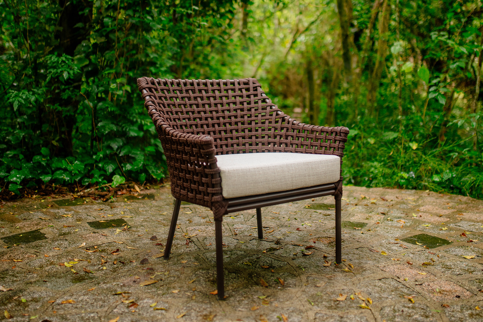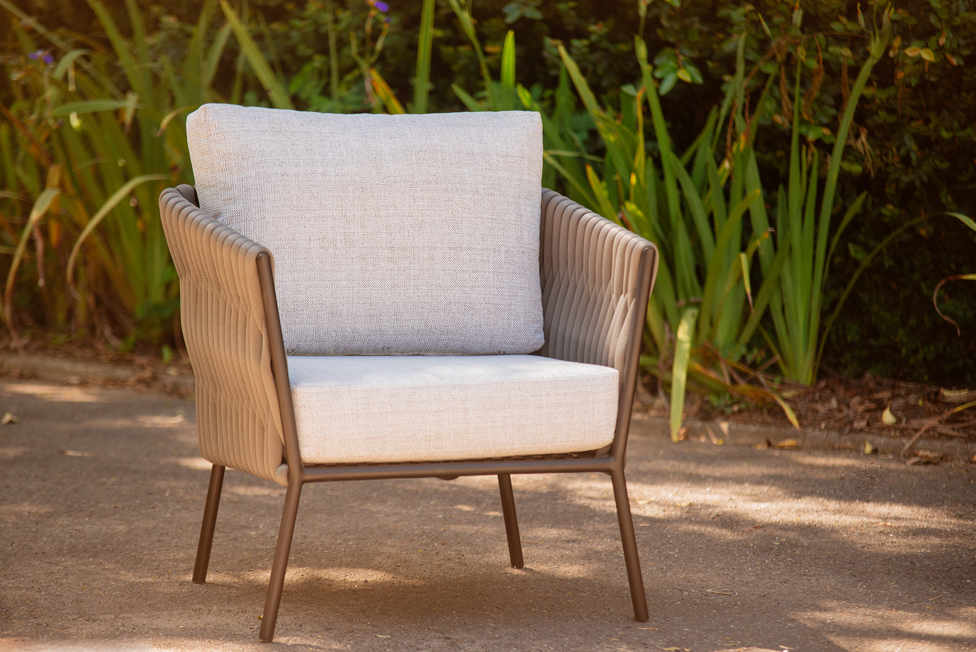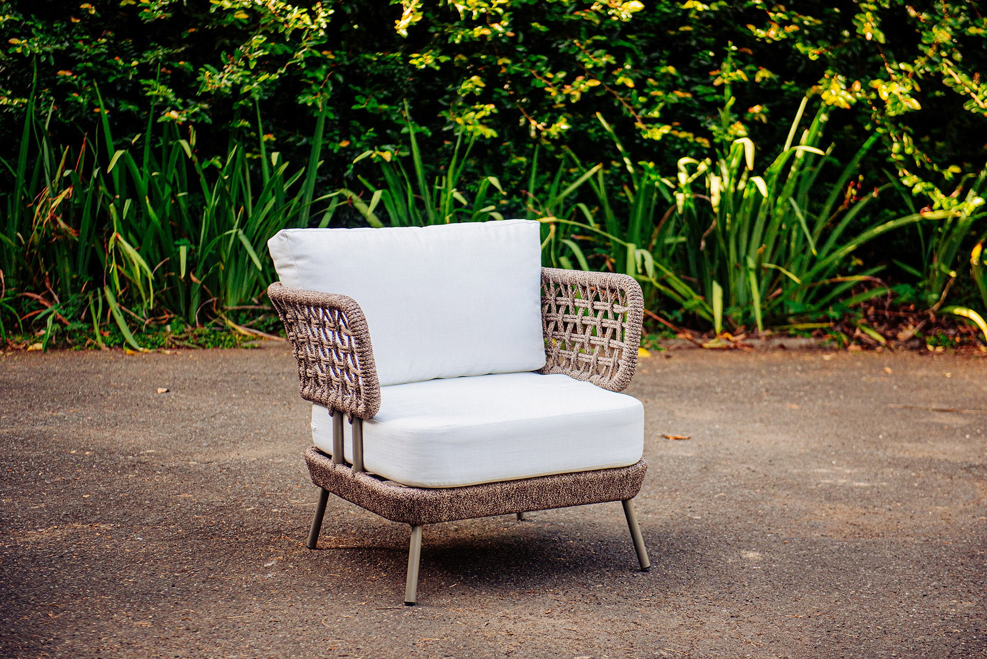 MATERIAL E ACABAMENTO: Estrutura em alumínio, pintura eletrostática e revestimento em corda náutica chata 22mm. MEDIDAS: Poltrona 0,78 x 0,75 x 0,82 m Sofá